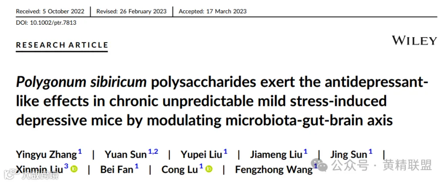 近日,中国农业科学院农产品加工研究所王凤忠团队针对PSP如何通过“微生物群-肠道-大脑轴”发挥抗抑郁作用开展了研究,在Phytotherapy Research (分区Q1,IF: 7.20)期刊上发表了题为“Polygonum sibiricum polysaccharides exert the antidepressant-like effects in chronic unpredictable mild stress-induced depressive mice by modulating microbiota-gut-brain axis”的研究论文。