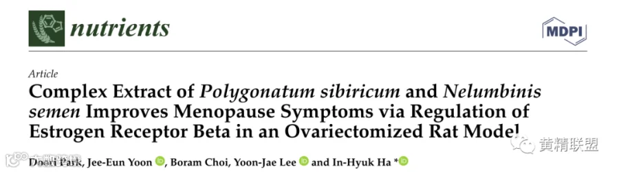为研究和比较PS和NS的复合提取物与单一提取物在改善更年期症状的功效,韩国Doori Park在Nutrients (Q1,5.9)上发表了题为“Complex Extract of Polygonatum sibiricum and Nelumbinis semen Improves Menopause Symptoms via Regulation of Estrogen Receptor Beta in an Ovariectomized Rat Model”研究论文。