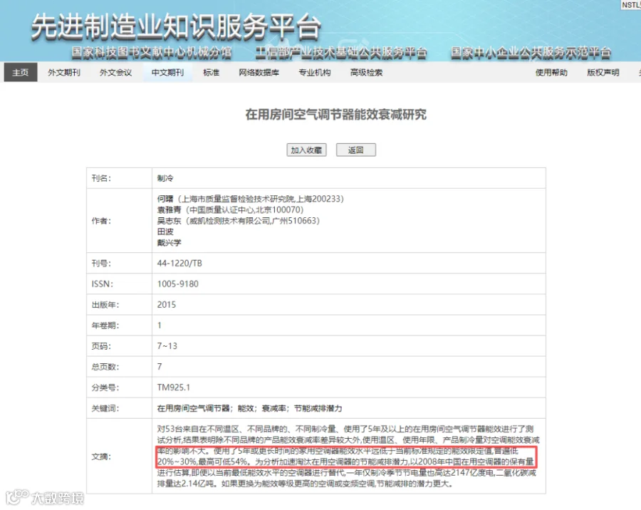 ▲来源:上海市质量监督检验技术研究院等单位联合发表的研究论文《在用房间空气调节器能效衰减研究》(2015年)