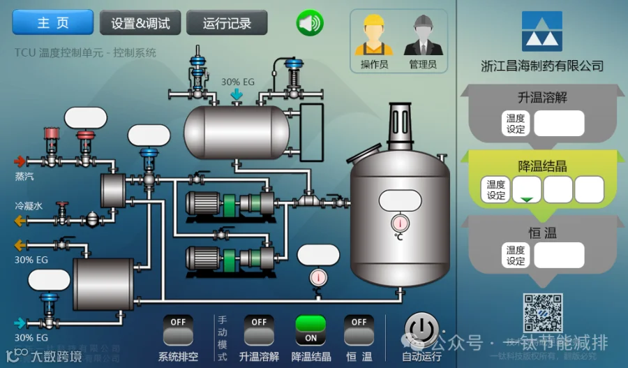 我们的TCU温控系统采用了单一的导热油为反应釜进行加热或降温,代替蒸汽、冷却水、冰盐水多种导热介质,减少了使用控制阀的数量,且在安全方面,可以针对特殊产品使用安全的导热油,提高了工艺安全等级。