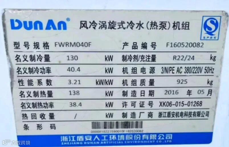 机型:盾安牌风冷涡旋式冷水(热泵)机组