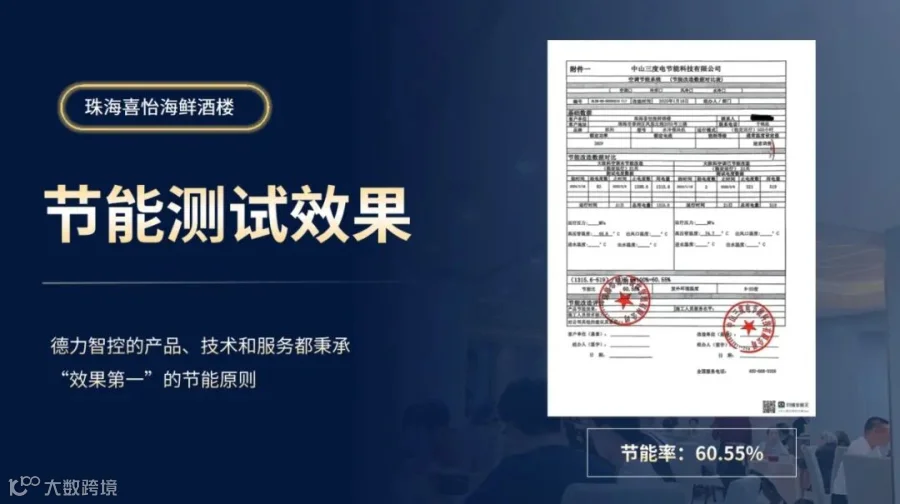 以珠海市一特色海鲜酒楼为例,德力智控为其量身定制节能改造方案,实地测试21天,节能率高达60.55%!