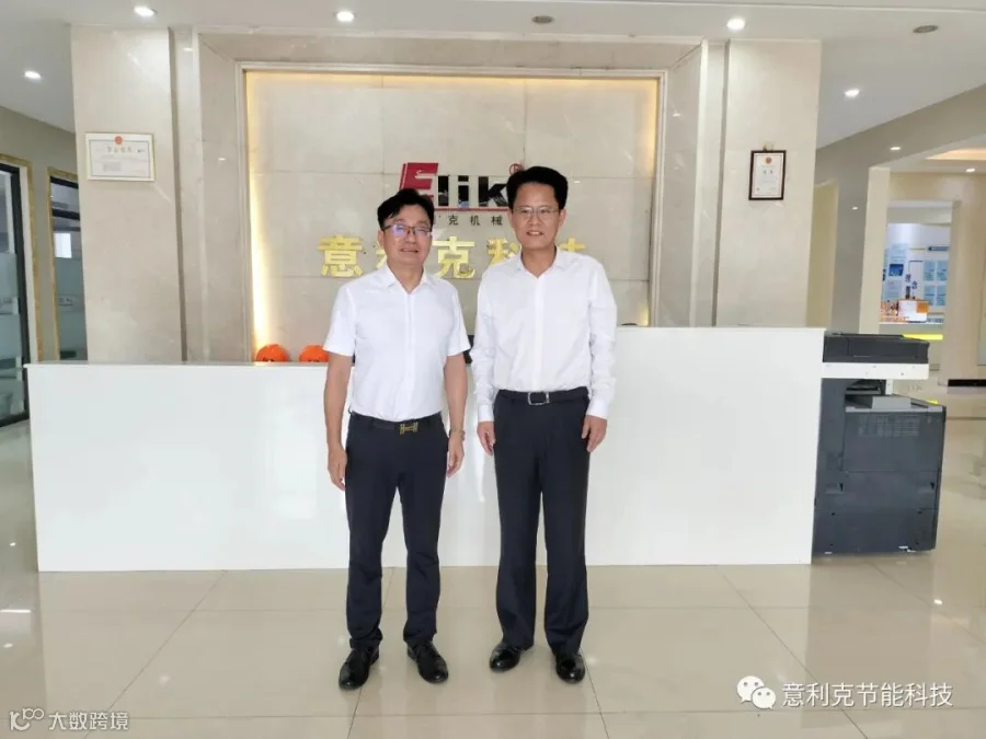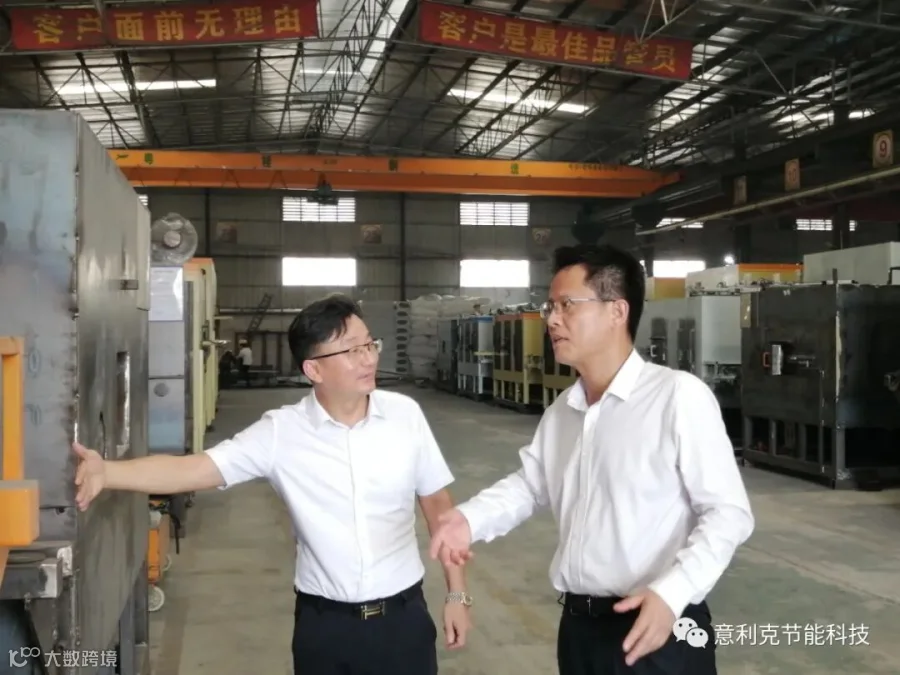 广东意利克节能科技有限公司董事长周厚宏热情接待了王区长一行。周董向调研组介绍了意利克传奇的创业历程,讲解企业获得的荣誉资质,调研组走访参观意利克文化展厅,深入了解企业的产品应用,观看企业与众多铝加工大企建立长期合作的“感恩墙”,观看第一代设备---短棒圆炉模型。调研组走进生产基地参观铝加热炉设备制作,考察设备工艺流程,搜集企业高质量发展生产要素。
