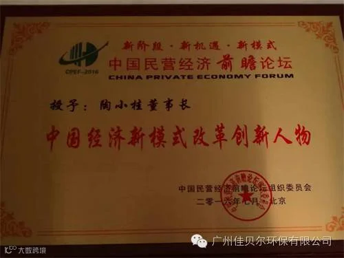 北京时间2016年7月22-24日以“新阶段、新机遇、新模式” 为主题的 “2016中国民营经济前瞻论坛盛会”在北京京西宾馆隆重召开。广州佳贝尔净水器喜获“中国企业自主创新领军品牌”和“中国经济新模式改革创新人物”两项大奖。“中国民营经济前瞻论坛”已连续举办六届。依托国务院发展研究中心智库优势,论坛定位于经济形势分析与发展趋势预测、最新政策解读与发展对策研判,具有较强的前瞻性、针对性、权威性和指导性。