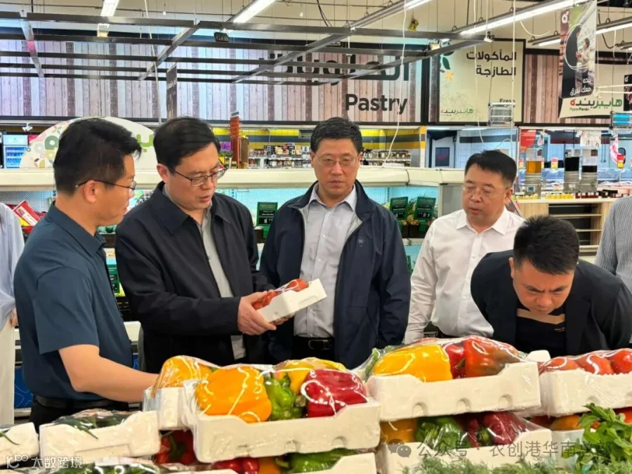 Gao Fulong briefed the delegation on the two projects’ roles as key commercial hubs for Chinese brands in the Middle East. The Dragon City focuses on showcasing Shandong specialties—including building materials, fresh produce, and home goods—while the No.8 Supermarket connects Chinese manufacturers directly to Saudi and regional infrastructure and consumer demands through a "factory-direct" model. During tours of Shandong product zones and the fresh vegetable section, Ms. Fanny Mei highlighted Weifang’s agricultural progress in Saudi Arabia: "Onions and ready-to-eat meats from Anqiu, along with processed vegetables from Shouguang, have gained initial traction via Dragon City. Last year’s Anqiu International Procurement Festival saw significant deals with Saudi buyers, boosting expectations for a 30% increase in cold-chain fresh exports this year." Gao noted that Dragon City’s "front-exhibition, back-warehouse" logistics model has reduced delivery times to around 20 days, cutting costs for enterprises.