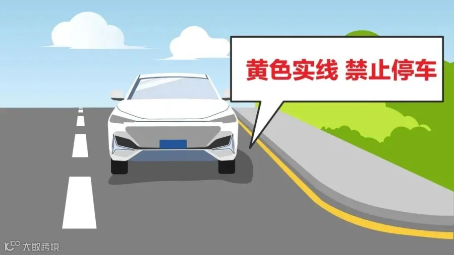 路缘石上标注为黄色实线,表示“禁止路边停、放车辆”,施划的长度表示禁停的范围。