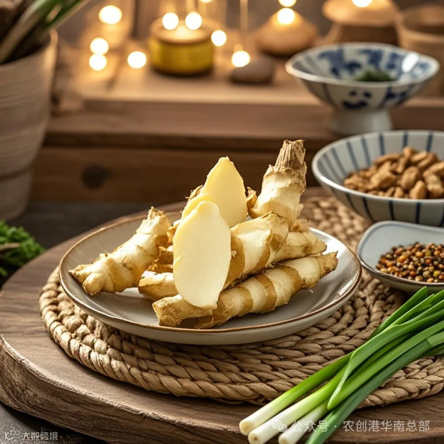 从外观上看,广西白姜独具特色。它的外皮呈现出淡雅的白色或黄白色,姜块往往较大,形状不规则,或扁平或块状,给人一种质朴而敦实的感觉。与一些常见生姜相比,它少了几分辛辣的 “锋芒”,口感脆嫩多汁,纤维细腻,渣滓较少,那股淡淡的姜香与相对温和的辣味,恰到好处地刺激着味蕾,无论是作为烹饪食材直接食用,还是用于加工制作姜制品,都别具一番风味。