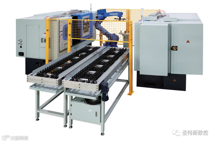 针对需要多工序加工的工件,使用机床及机械臂集成,掉头装置、履带式 运输带辅助的方式,满足多工序自动化加工需求。方案可实现24小时运行,无需专人值守,大幅提升人均产值。