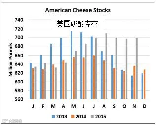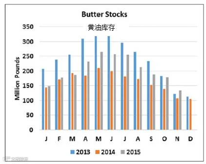即使全球牛奶产量放缓,仍需要一段时间才能用完目前的乳品库存,特别是奶粉市场和奶酪市场。在政府干预计划中,价格再次低得足以刺激欧洲的生产商销售脱脂奶粉(SMP)。在美国,美国奶酪库存从11月30日的120万磅攀升至6.98亿磅,与一年前相比,同比增长21.8%。美国奶酪库存11月份明显下跌。与此相反,黄油库存11月下跌近26%,即4610万磅。不过,1.327亿磅的黄油库存比2009年以来任何一个11月的库存都要高。