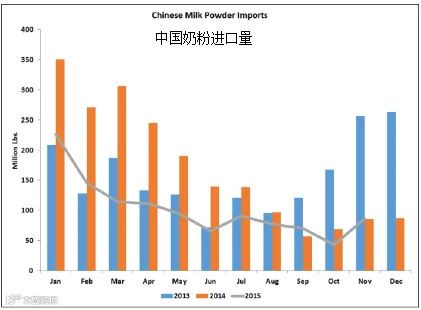 2015年乳品行业十分不景气。自2014年来,牛奶和牛肉下降到前所未有的低价。饲料和能源成本也走低了。看着曾经丰满的收入变单薄,乳制品生产企业非常沮丧。中国市场像大多数商品市场一样不景气。11月中国乳制品进口略有改善,但与2013年底和2014年初相比仍然低迷。美国乳品出口协会估计,中国和俄罗斯乳制品进口量从巅峰跌至近期的低谷,以鲜奶当量计,从全球市场损失超过10%乳品贸易。
