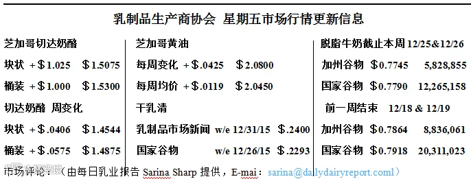 这是最好的时代,这是最坏的时代……这是希望的春天,这是失望的冬天。查尔斯˙狄更斯并没有用这诗形容奶牛,但用在它们身上却非常贴切。在许多国家,圣诞节是很温暖的。在中西部和东北地区的牛群享受着春天般的温度,比该地区正常温度要高20℃。牛奶被迫倒掉。据乳业市场的消息,“中西部地区用于制作奶酪的现货牛奶,价格低至6-7美元/磅。中西部地区的库存信息正在整理中。“这周温度有点下降,但该季度仍难以供给正常产量。