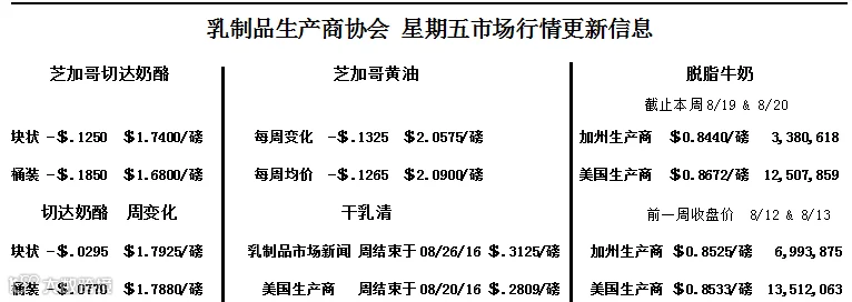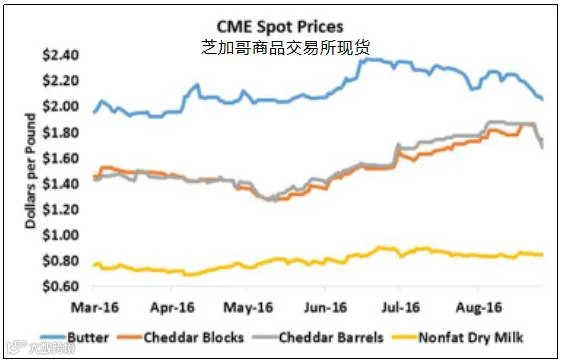 加州4a牛奶$13.92/100磅 加州4b牛奶$16.34/100磅