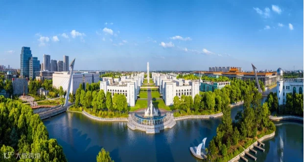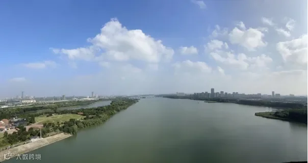六月,京杭大运河扬州段,两岸绿意盎然,河水透亮如镜。万福大桥静静地横跨河面,其下运河的水面闪烁着粼粼波光,桥身雕琢的多样“福”字诉说着扬州厚重的历史故事。塔楼工作人员介绍,当晴空万里,站在七楼的观景点,南边五峰山的壮丽景色尽收眼底。环顾四周,城市与自然和谐相融,一片翠绿的城市轮廓、七条河流与八座岛屿的天然画卷,以及江广新城的现代活力,都在这幅宏大的视角中展现无遗。
