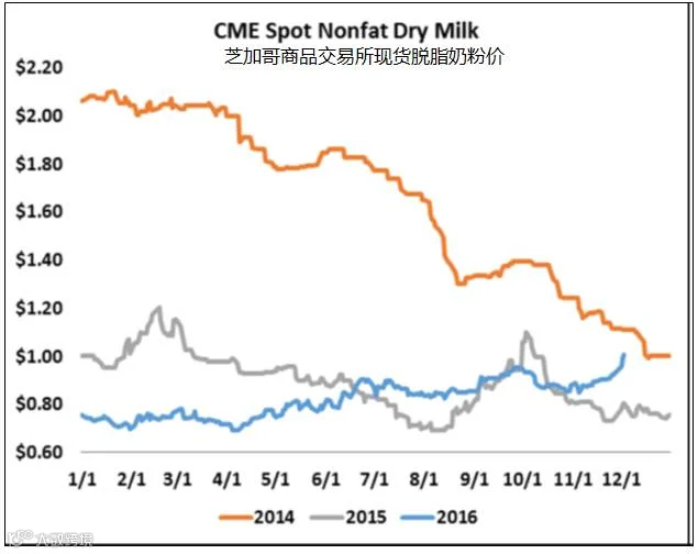 南美洲的牛奶产量仍在下降,欧洲的产量也在逐渐减少。美国农业部估计,由于牛奶价格下跌以及奶牛群数量10%的减少,中国2016年的牛奶产量将比去年跌幅5%。明年产量预计充其量是保持稳定。