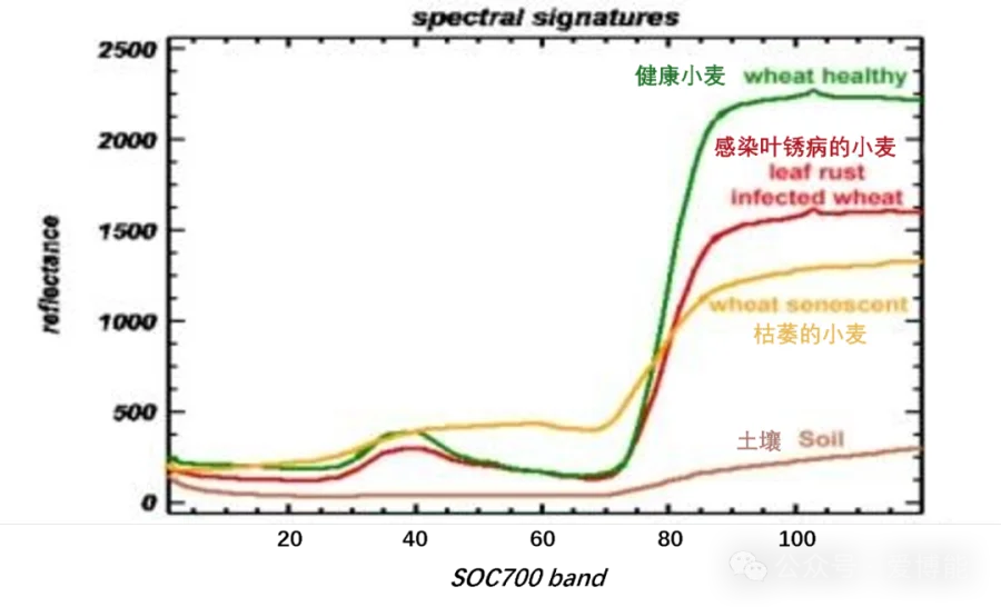 被昆虫啃食的植物,叶绿素下降,叶面积、叶片机构也会发生变化;而感染真菌病害的植物叶片,其细胞结构会被破坏,叶绿素会分解。这些都会导致叶片在可见光和近红外波段的反射率发生变化。通过定期监测农田的光谱,可以及时发现病虫害,采取防治措施。