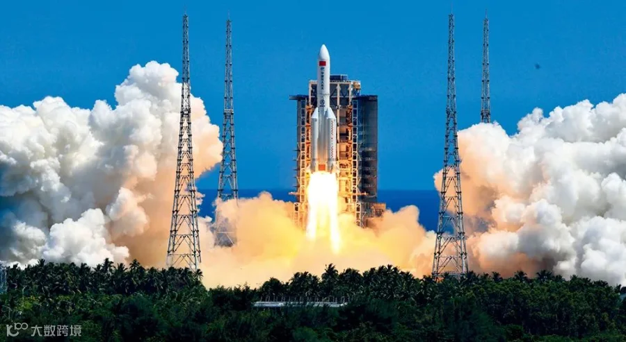 搭载问天实验舱的长征五号B遥三运载火箭,在我国文昌航天发射场点火发射(2022年7月24日摄) 李刚摄