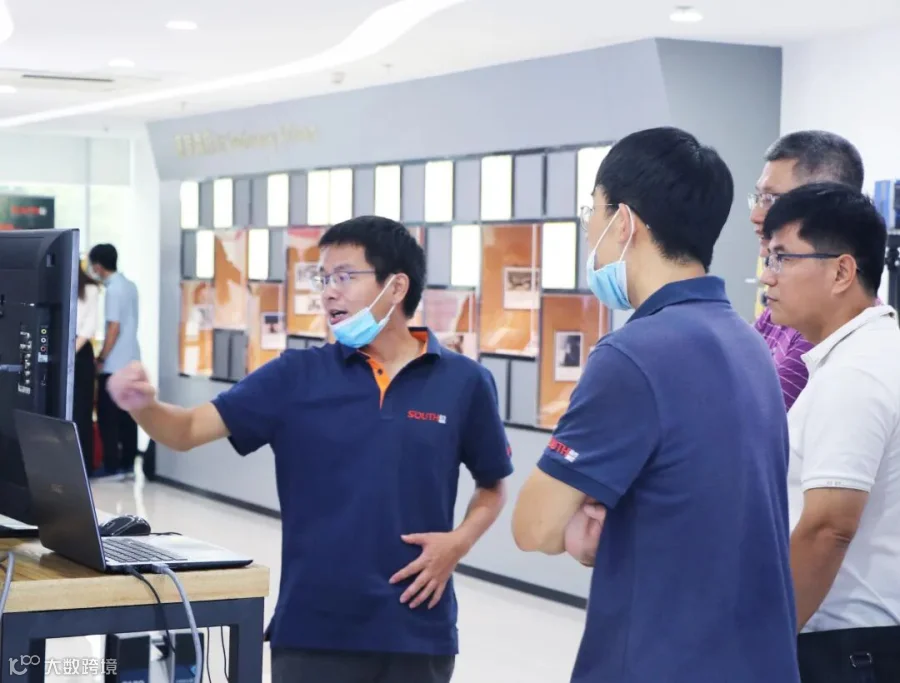 在相关人员的带领下,老师们参观了南方测绘技术成果展示厅。技术成果展厅展示了南方智能监测技术及行业应用、建筑结构三维扫描技术应用、IDATA点云数据采集平台、倾斜摄影无人机、北斗教学系统平台、测绘虚拟仿真教学系统、智能安卓全站仪等前沿技术产品和高精度测绘装备。展厅专业讲解员就展厅产品及技术与老师们进行深入交流,并分享项目实践经验。