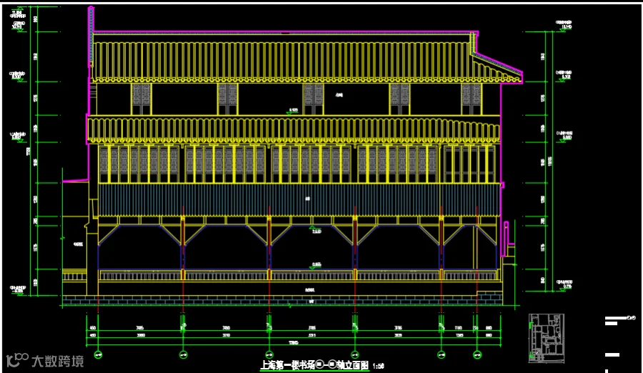 南方测绘广州分公司古建筑扫描团队利用专业三维激光扫描仪,获得高精度、全面性强的历史建筑三维点云数据,其尺寸信息与真实建筑物的尺寸信息可以达到μm级精度,完全胜任直线测量、曲面测量、路径测量等任意测量方式,便于我们完成建筑物平面图、立面图、剖面图及高难度大样图的绘制工作。