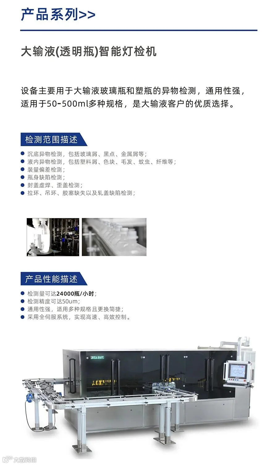 华研旗下分公司——广州华研制药设备有限公司,自成立以来,依靠强大的研发创新能力,深耕视觉检测系统的研发及生产,致力于为制药、食品行业提供机器视觉检测及自动化解决方案。现隆重推出全自动(瓶胚)灯检机、大输液(透明瓶)智能灯检机、灌装线检测设备等系列产品。