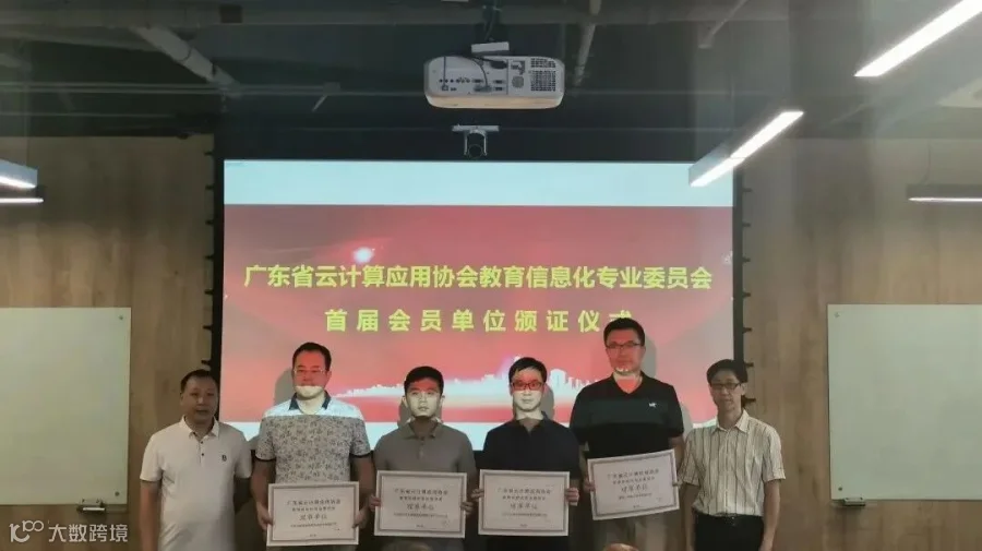 广东省云计算应用协会执行副会长岳浩、广东省云计算应用协会教育信息化专委会主任陆谊为理事单位、会员单位颁发证书
