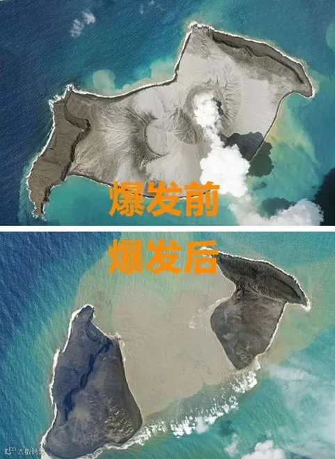 从卫星地图的对比来看,爆发火山的岛屿被巨量的火山灰直接掩埋,场面极其可怕,巨大的响声远在美国阿拉斯加都可以听到。