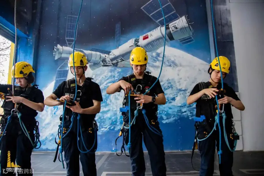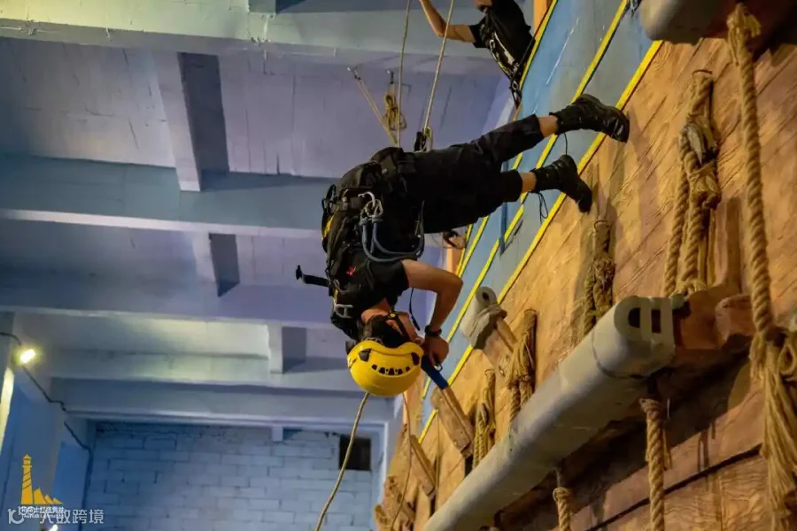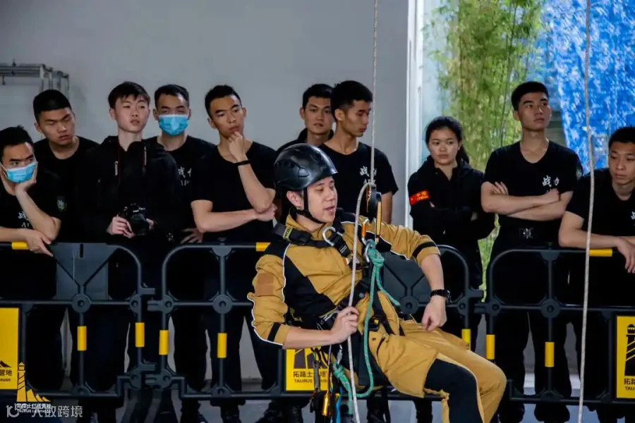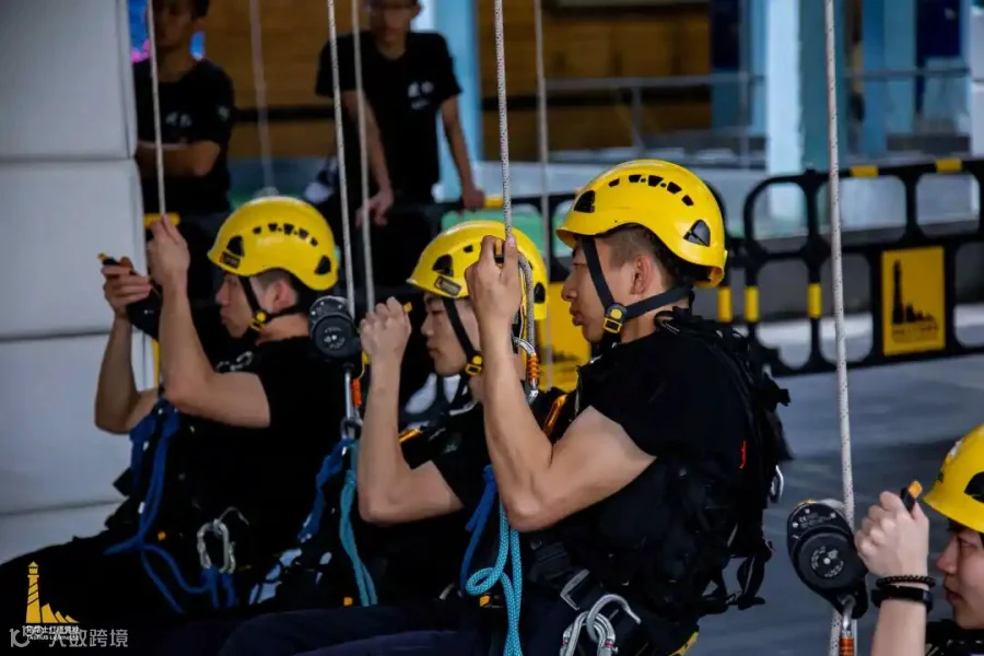 穿戴专业设备,生龙活虎的队员们,在拓路士明星教官皇子的带领下,开始了现代绳索运动的挑战!