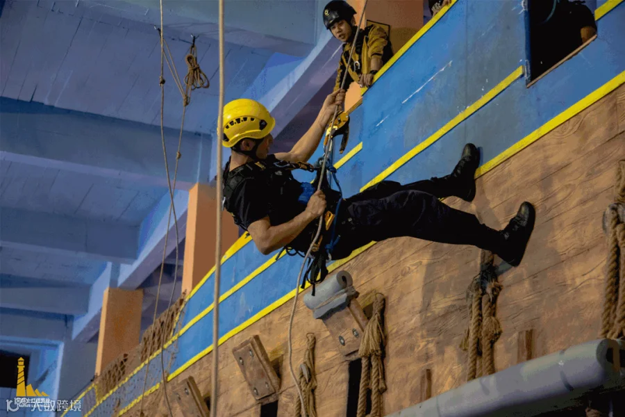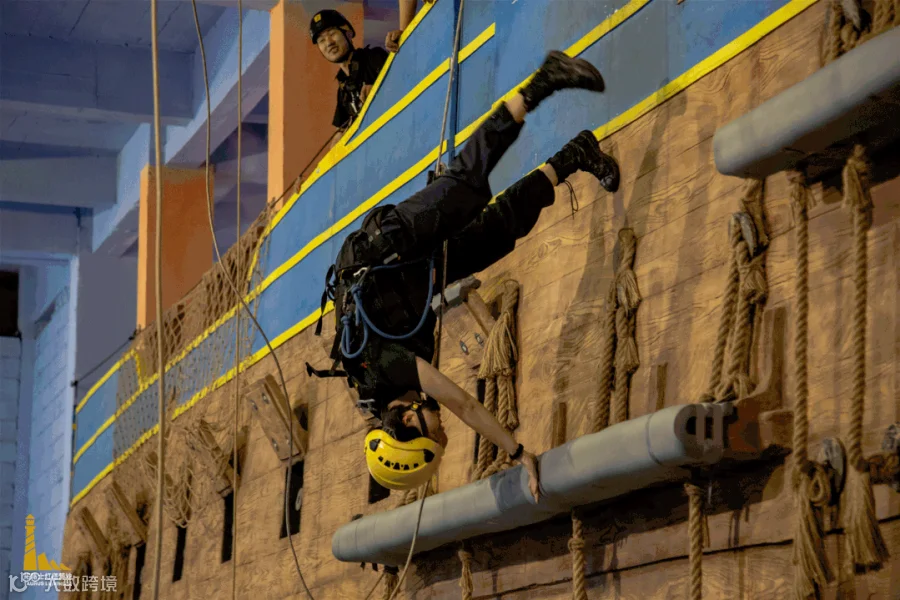 队员们上演腾空后翻、横踏甲板……仿佛上演惊心动魄的“枪战”场面,堪比大片!
