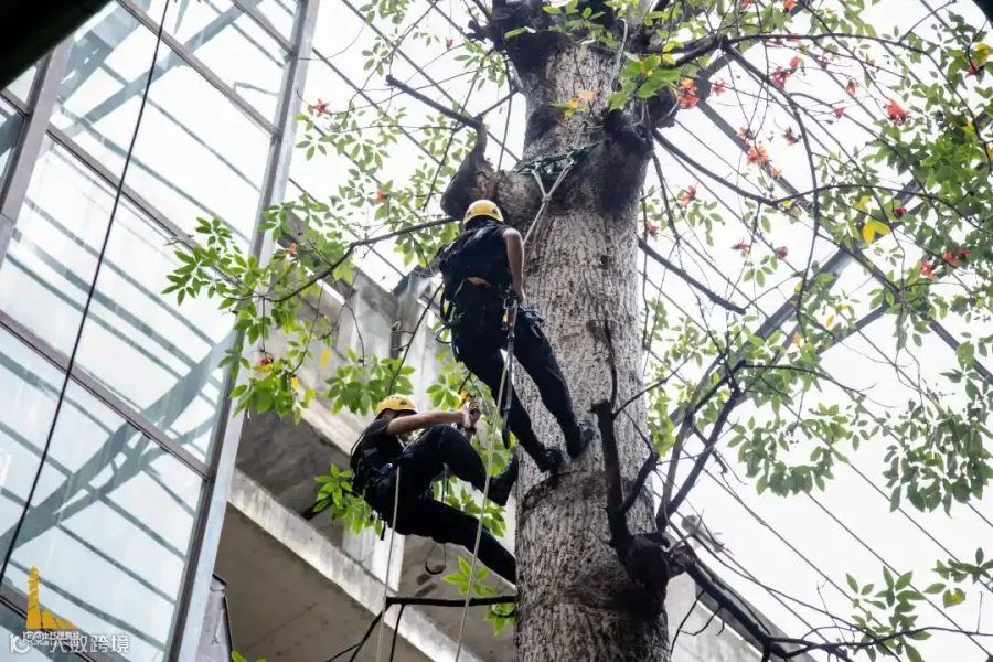 馆外,雄壮魁梧的树干上,队员们逆风而上,攀向又一处的“高峰”!