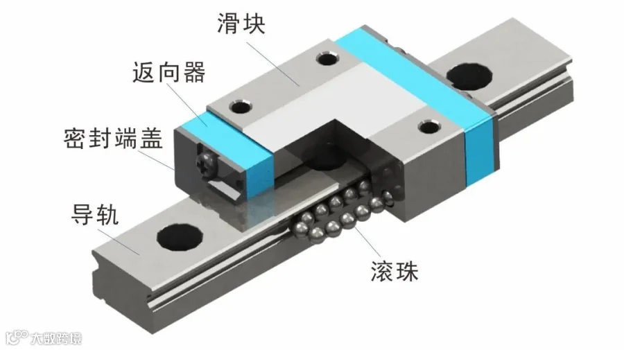 滑块零部件之间采用互相扣合的方式,结构更紧密,钢球循坏更顺畅。