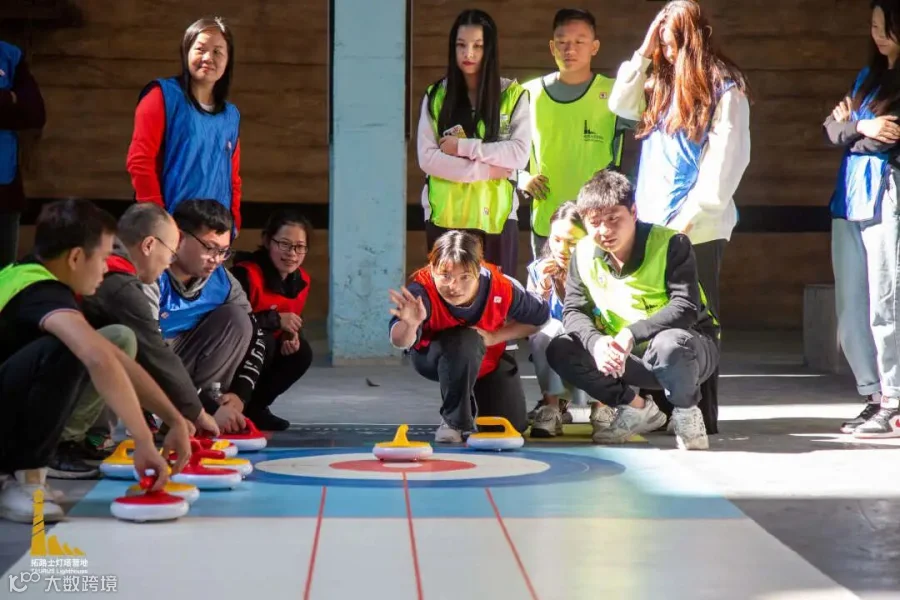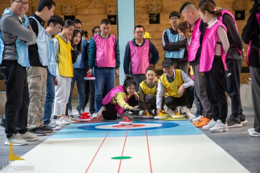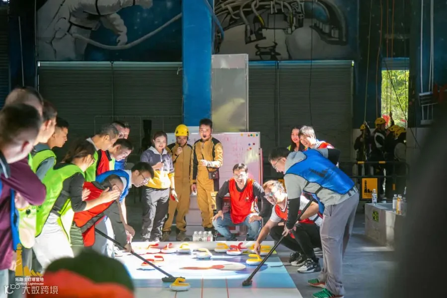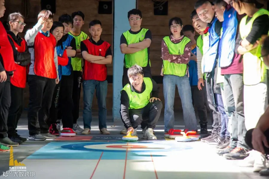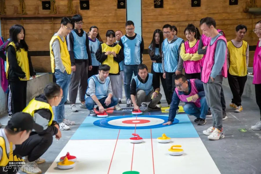 第二项挑战是“旱地冰壶”,也是当下非常热门的团建游戏。它来自冬奥会比赛项目“冰壶”。复杂的运动玩法,让队员们意识到战略计划的重要性,激发团队协调和沟通能力,同时提升应变能力。对于企业来说,也能帮助发掘具有潜力的员工,发挥员工在日常工作中的长处。