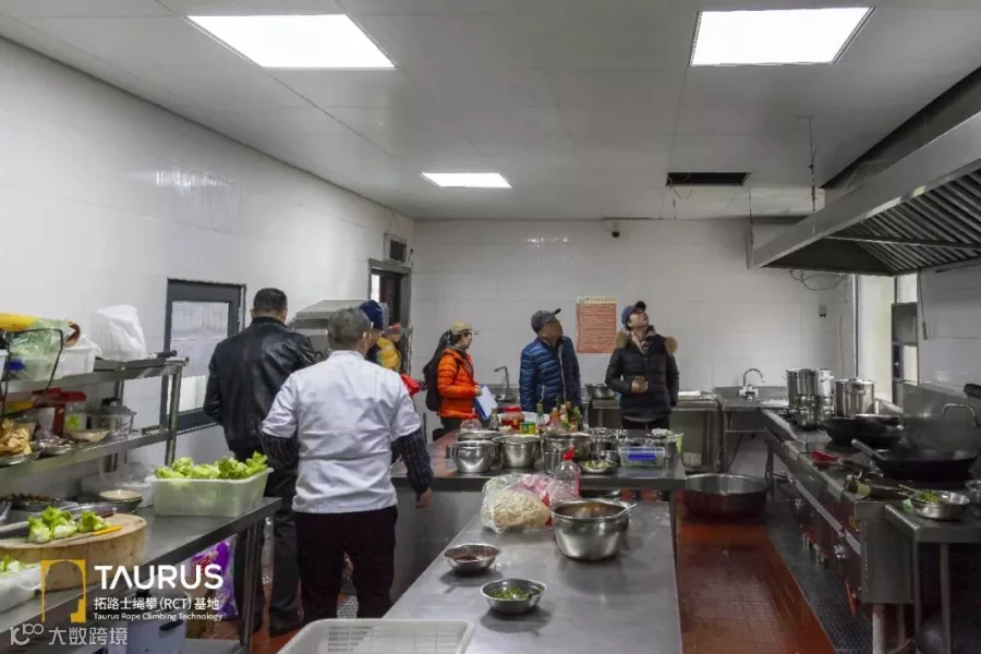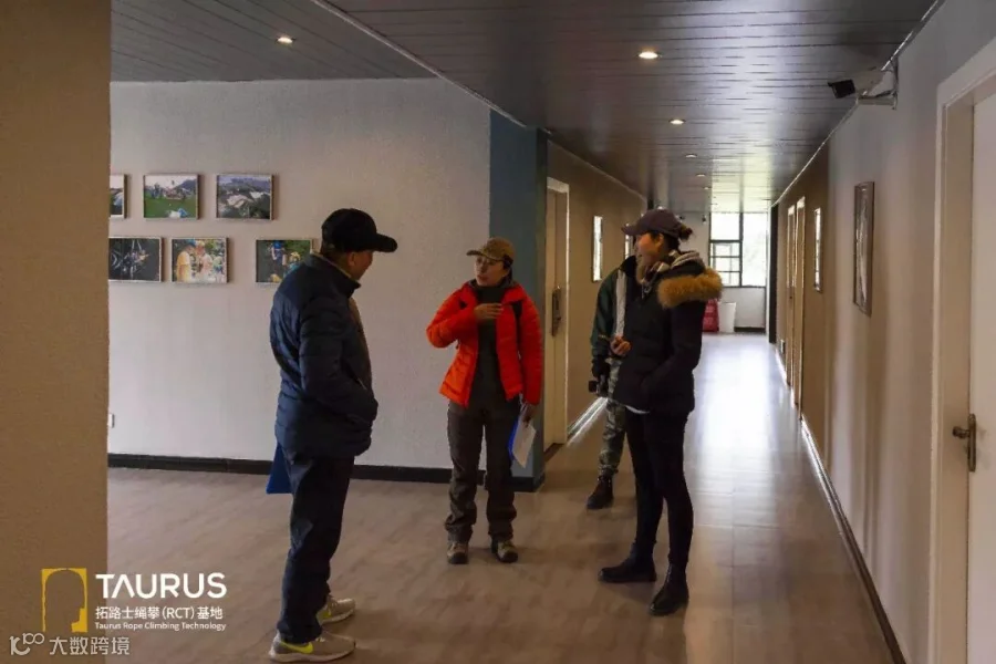 本次检查共分为两组,A 组为生活组,由符川流老师带队,主要对拓路士绳攀基地餐饮区、住宿区以及新规划场地进行安全、卫生检查;B 组为基建组,由辛向阳教授带队,主要对拓路士基地训练场馆以及训练塔的结构、防坠、材料、消防等各项情况做全面安全检查。
