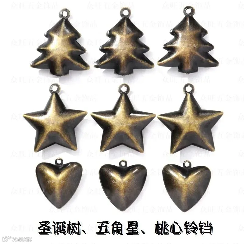 热销麻绳铃铛圣诞装饰挂件五角星铃铛桃心铃圣诞树复古铁铃配件
