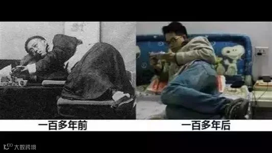 百年前躺着吸鸦片,百年后躺着玩手机,姿态有着惊人的相似。
