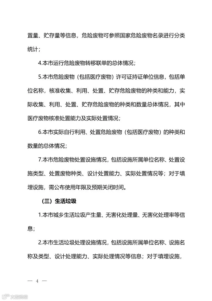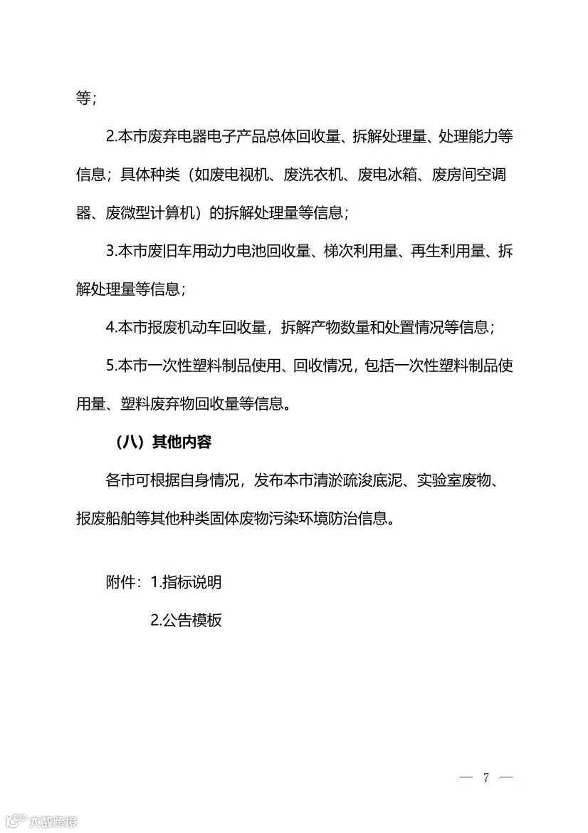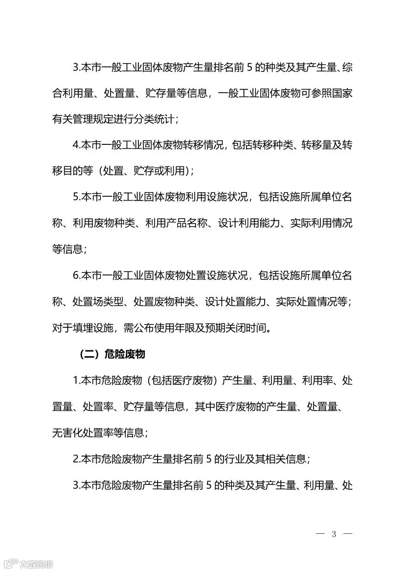 2月4日,生态环境部印发《固体废物污染环境防治信息发布指南》的通知。根据指南,固体废物污染环境防治信息宜于每年6月5日前发布。固体废物污染环境防治信息可采取公告的形式,通过当地政府网站向社会发布。