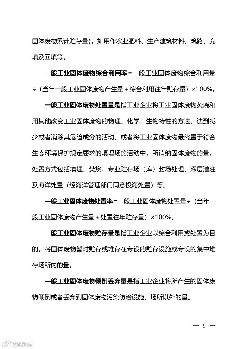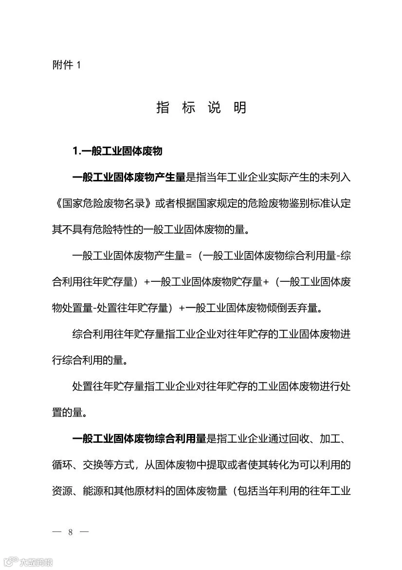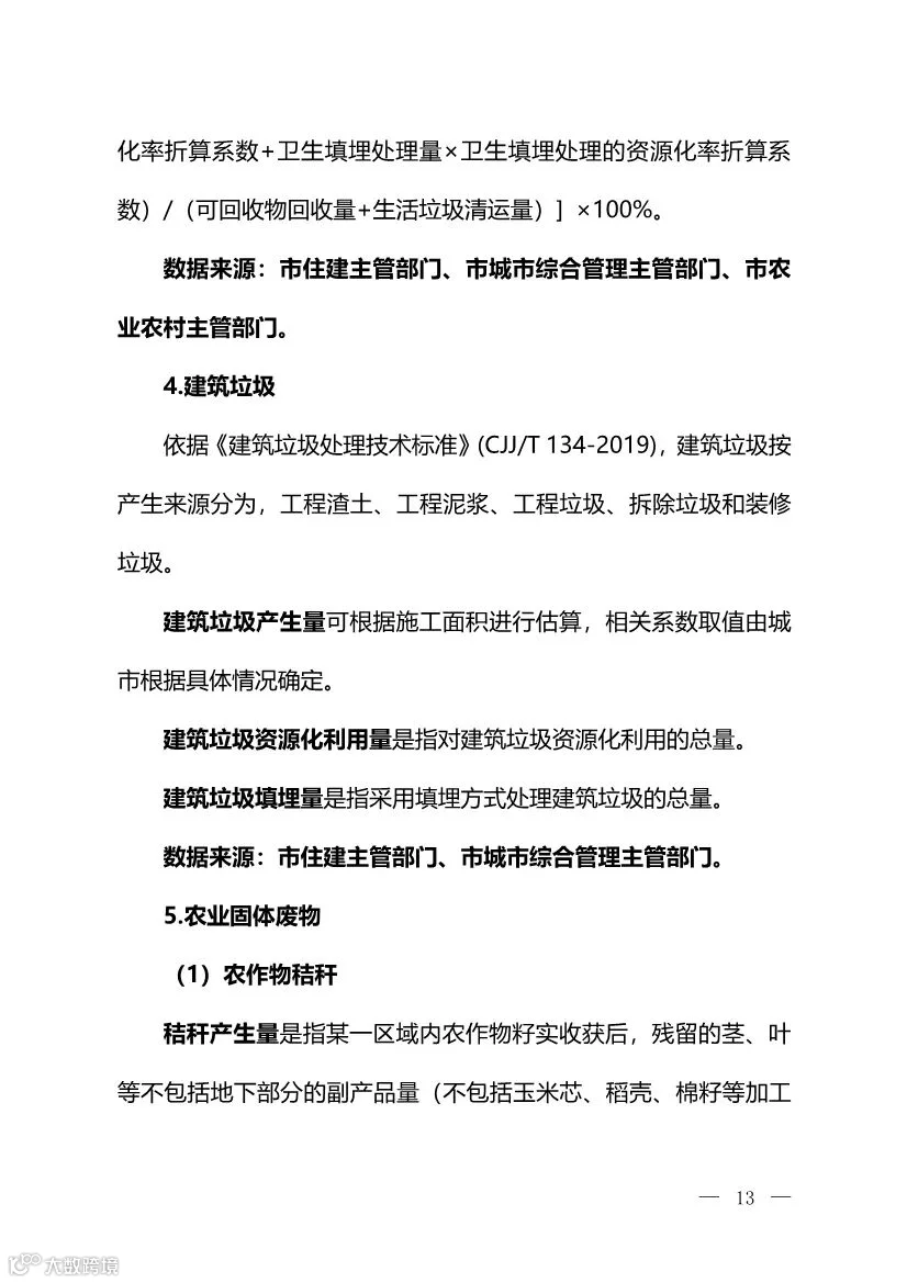 固体废物类别有八类,其中,生活垃圾对回收利用率和资源化利用率的计算方法被明确: