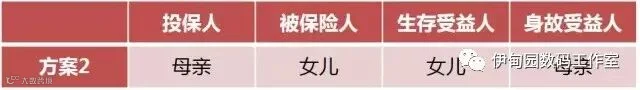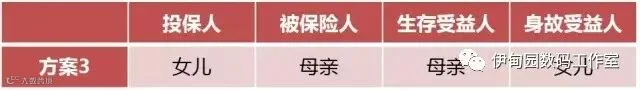 在方案3中,如果是母亲想给女儿钱,怎么这种投保方式其实没啥必要。这种方案其实核心的逻辑是“女儿爱妈妈”,多见于富裕、年轻的单身女性或准备再婚的女性,在结婚前为母亲做好安排。