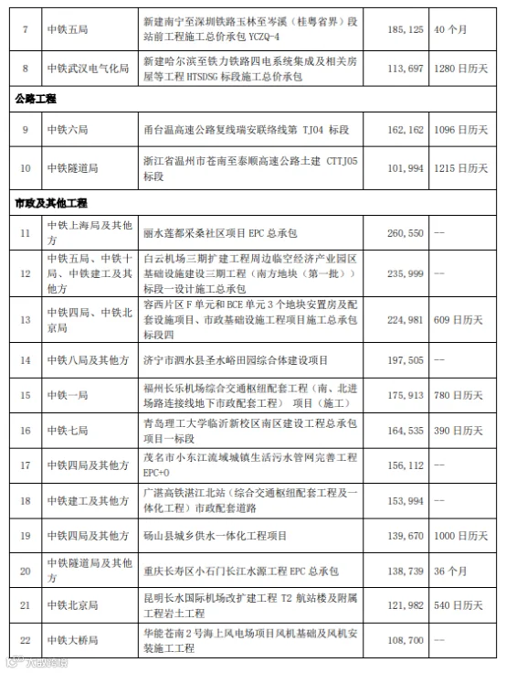 日前,中国中铁、中国铁建分别发布重大工程中标公告。