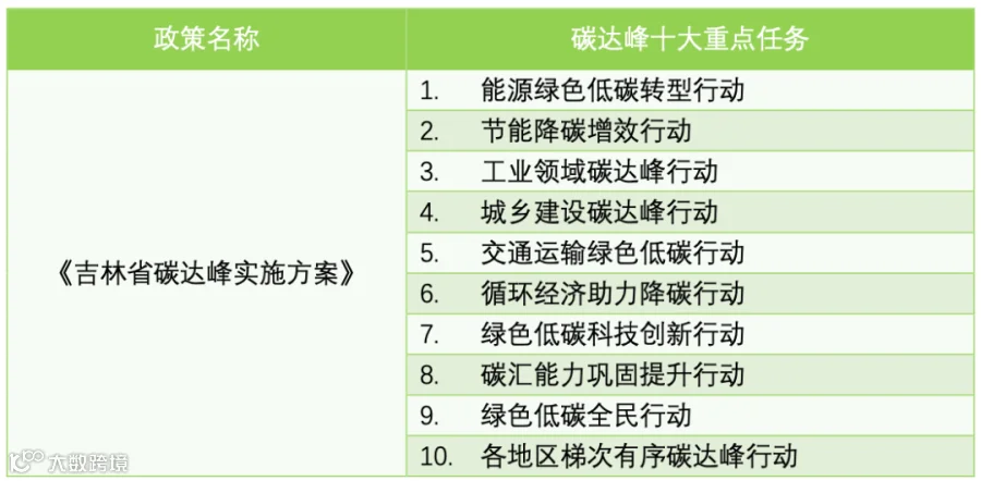 《吉林省碳达峰实施方案》聚焦“十四五”和“十五五”两大重要转型时期,制定碳达 峰十大行动,确保碳达峰目标顺利完成。