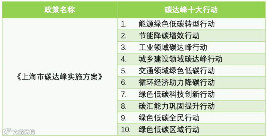 《上海市碳达峰实施方案》明确了“十四五”和“十五五”两个重要时期的主要目标,并进一步聚焦重点举措、重点区域、重点行业和重点主体,组织实施“碳达峰十大行动”。