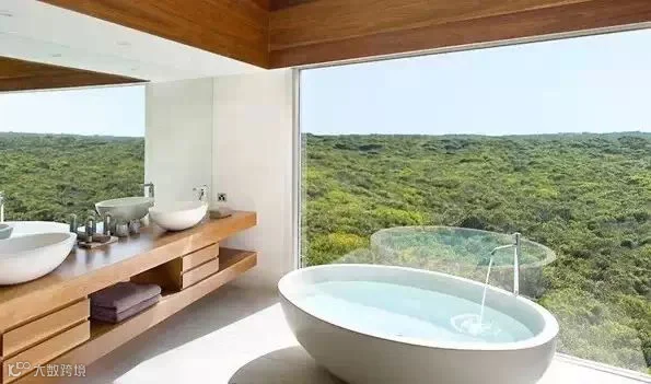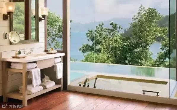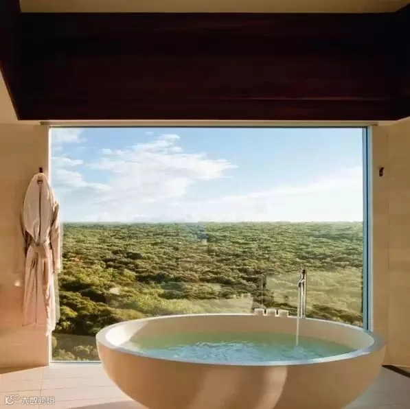 躺在浴室里,透过大面积的玻璃窗可以看到室外硕大无比的美景。