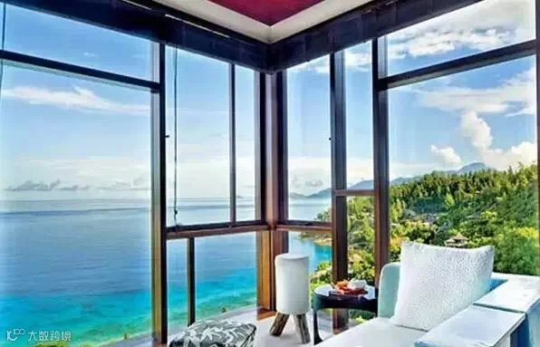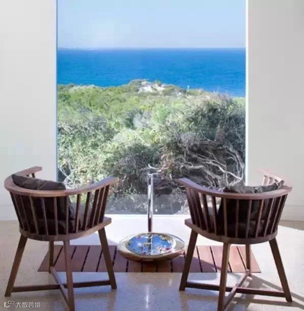 巨大的落地窗,让涛声和海浪都引入房间,一片蔚蓝。