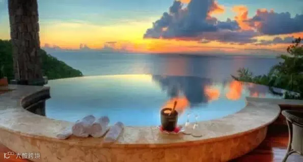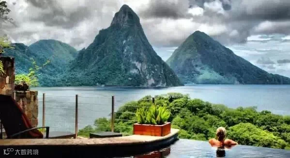 Jade Mountain酒店把天然美景与酒店的私密空间融为一体,每间套房都有私人按摩浴缸或无边泳池,池水与湛蓝海水连成一片。靠在泳池边,饱览圣卢西亚岛上Piton双子峰和加勒比海,景色唯有浪漫和魔幻可以形容。