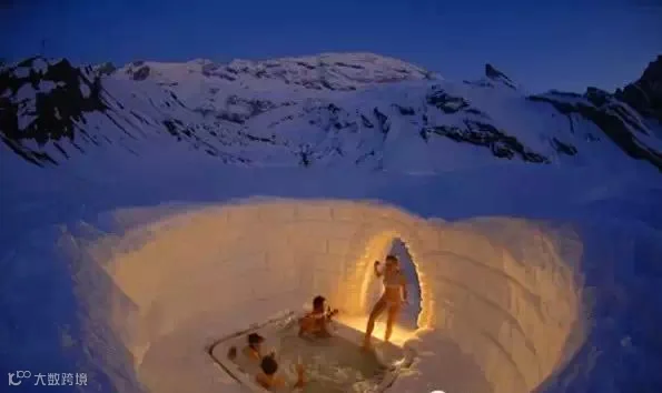 除了冰教堂、冰电影院、冰客房、冰酒吧,更有冰雪环绕的露天温泉,在极寒的瑞典,这就算住客们极致享受的温暖“浴室”了吧~