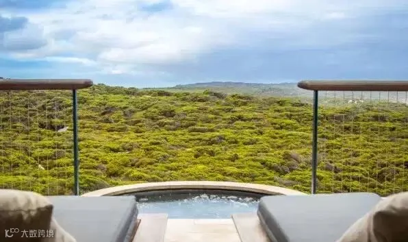 在浴缸里可以看到大海,营造出一种浪漫的理想氛围。最重要的是,这里还有一个私人的超大热水浴缸。