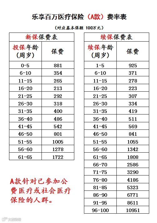 算。凡参加了政府举办的基本医疗保障项目,包括城镇职工基本医疗保险、城镇居民基本医疗保险、新农合、医疗救助等的客户,均是购买乐享百万A款。