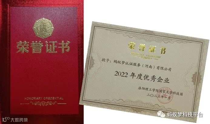 喜报!蚂蚁梦认证服务(河南)有限公司荣获”洛阳理工学院国家大学科技园2022年度优秀企业”称号