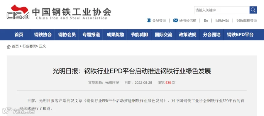 钢铁行业EPD平台首发仪式圆满举行