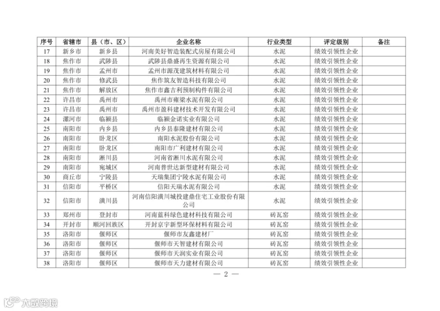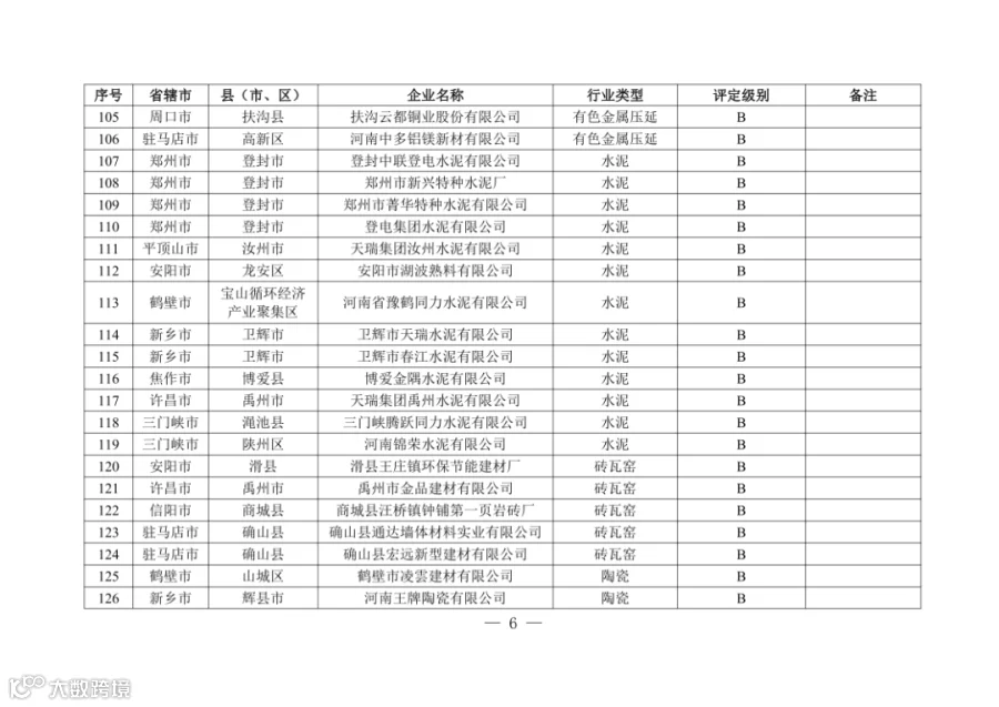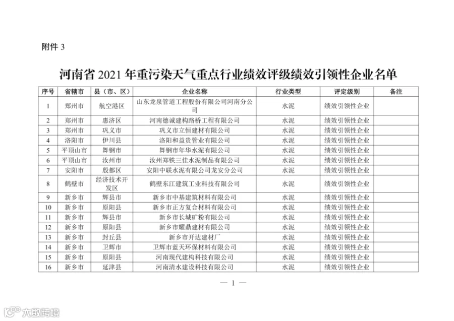 5. 4家水泥企业为A级!河南发布重污染天气重点行业绩效评级结果