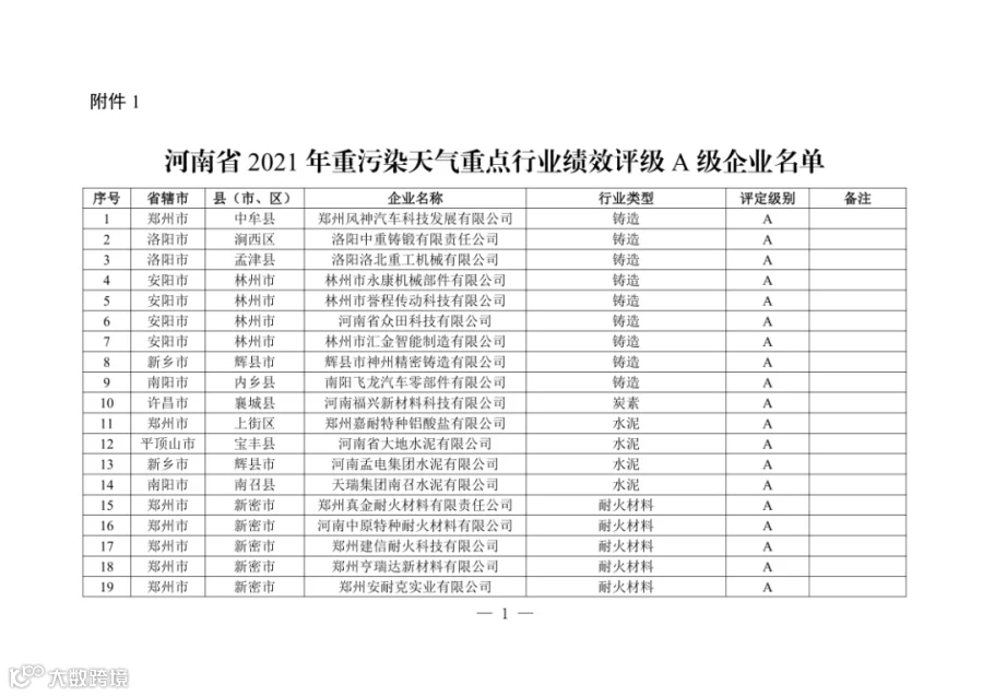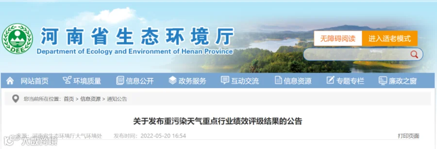 近日,河南生态环境厅发布了重污染天气重点行业绩效评级结果。