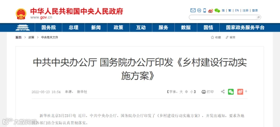 中共中央、国务院印发《乡村建设行动实施方案》